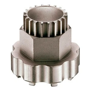 Two-Way integrated ISIS splined bottom bracket tool and 8-point bottom bracket tool. For use with 32 mm CNC Rod or an adjustable wrench. Compatible with many popular bottom brackets.