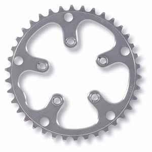 - Caractéristiques : Compatible SHIMANO ou autres marques au standard 130mm 5 branches / Nombre de dents : 42 / Position : Intermédiaire /Ce plateau permet de transformer un pédalier double en triple , le petit plateau vient se fixer sur celui-ci / Compatible avec des chaines 9/10 vitesses / couleur : Argent / Matière : Aluminium 7075 / Non Compatible avec les pédaliers doubles à axe intégré 24 ou 30mm